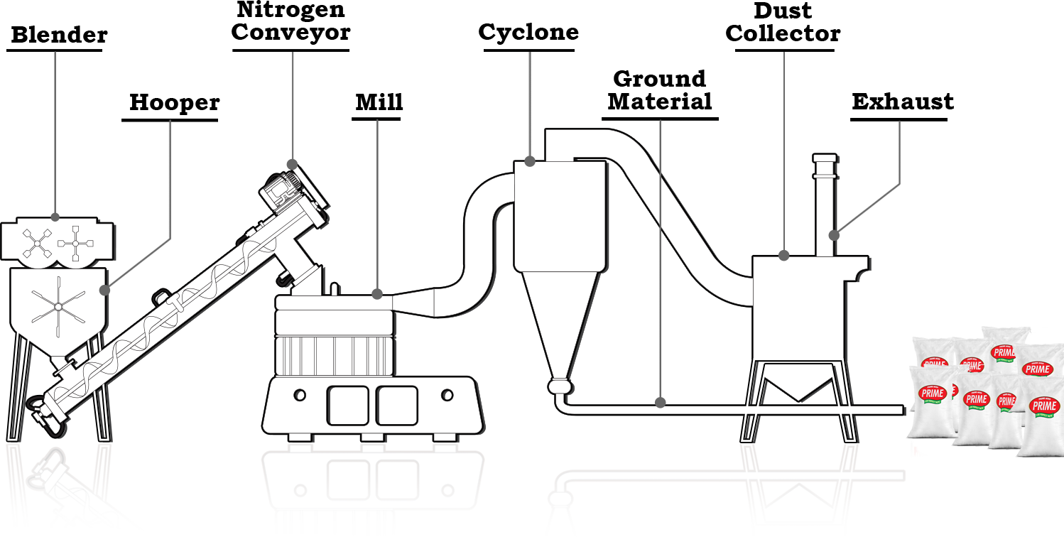 World-Class Cryogenic Grinding facility with production output of upto 2000Kg/hr. Controlled and Monitored by SCADA systems.